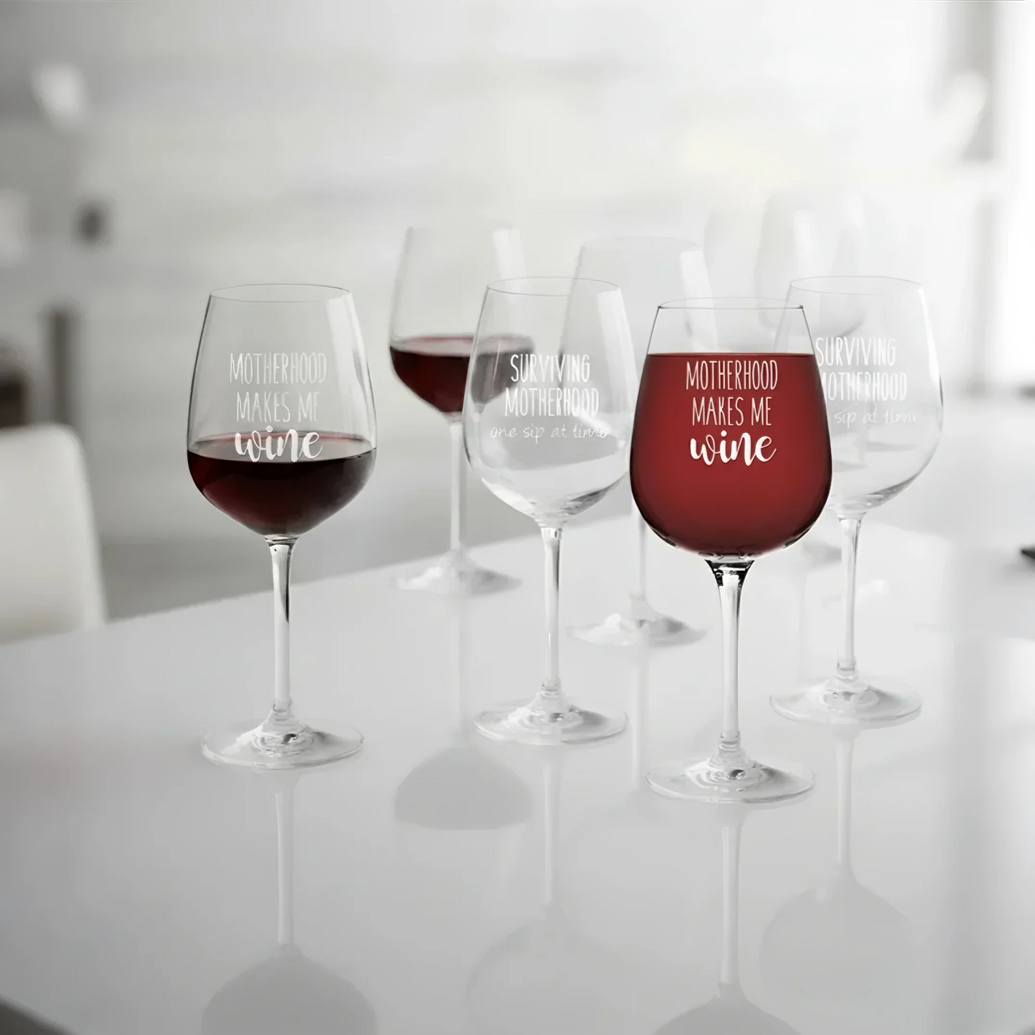 A perfect wine glass for every mother who knows the value of a good glass of wine after a long day. Featuring the playful phrase "Motherhood Makes Me Wine," this glass adds a touch of humor to your wine collection.