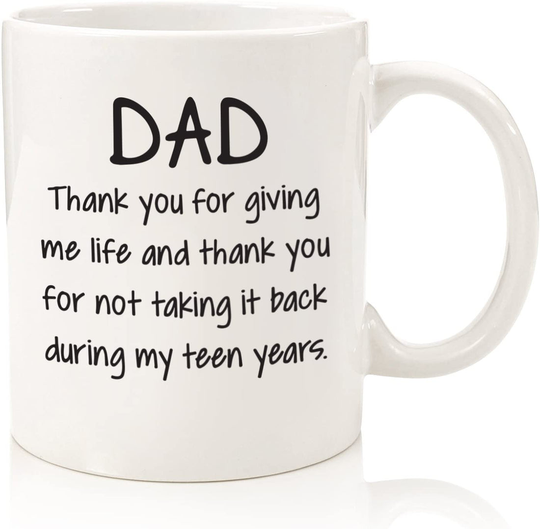 Dad Thank You For Giving Me Life Funny Coffee Mug - Best Christmas Gifts for Dad, Men - Unique Xmas Gag Dad Gifts from Daughter, Son, Kids - Cool Birthday Present Ideas for Father - Fun Novelty Cup