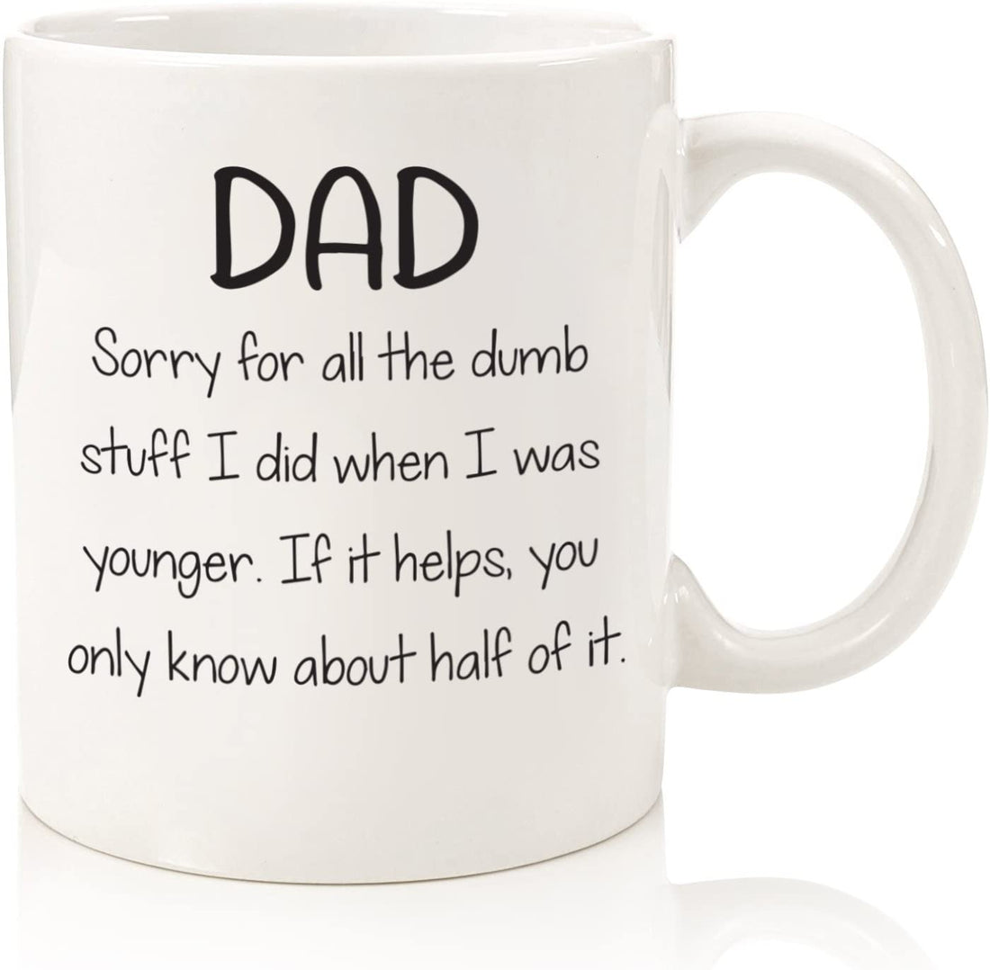 Dad Sorry For The Dumb Stuff Funny Coffee Mug - Best Christmas Gifts for Dad, Men - Unique Xmas Gag Dad Gifts from Daughter, Son, Kids - Cool Bday Present Idea for Father, Guys, Him - Fun Novelty Cup