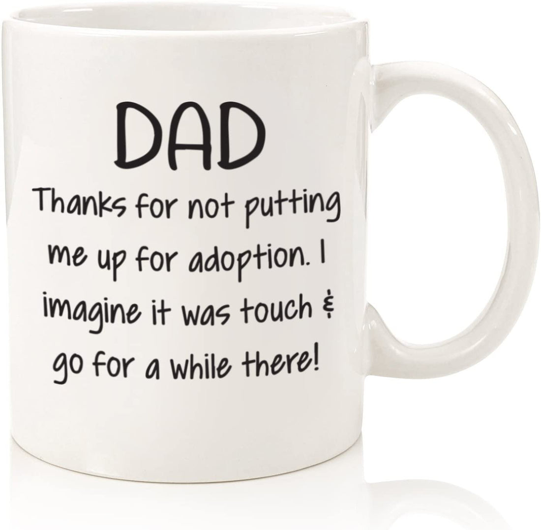 Dad Thanks For Not Funny Coffee Mug - Best Christmas Gifts for Dad, Men - Unique Xmas Gag Dad Gifts from Daughter, Son, Favorite Child, Kids - Cool Bday Present Idea for Father, Him - Fun Novelty Cup