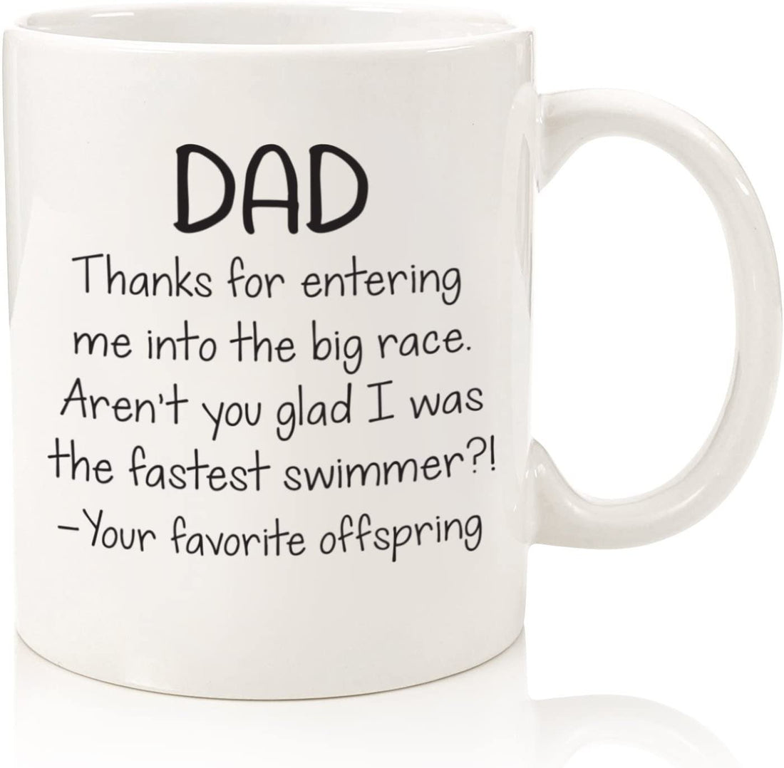 Dad, Fastest Swimmer Funny Coffee Mug - Best Christmas Gifts for Dad, Men - Cool Xmas Gag Dad Gifts from Daughter, Son, Kids, Favorite Child - Unique Birthday Present Idea for Father - Fun Novelty Cup