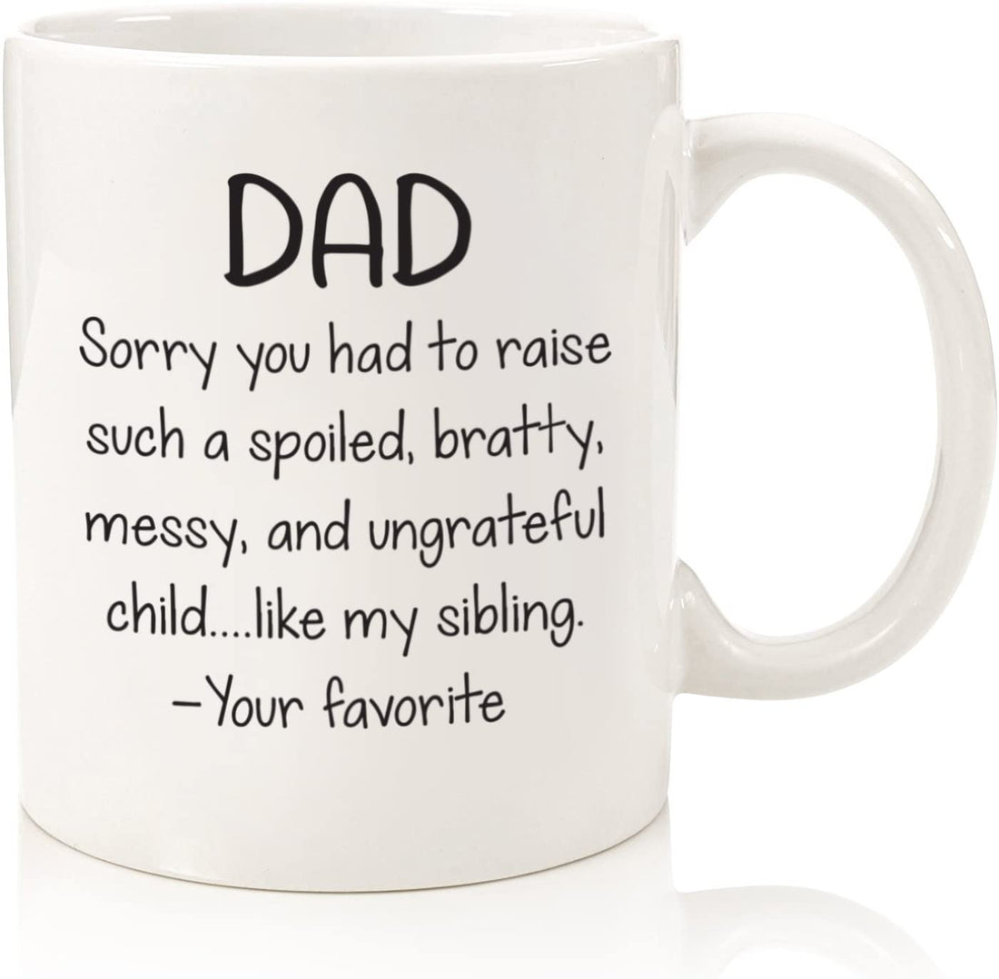 Dad, Spoiled Sibling Funny Coffee Mug - Best Christmas Gifts for Dad, Men - Unique Xmas Gag Dad Gifts from Daughter, Son, Favorite Child - Cool Birthday Present Idea for Father, Him - Fun Novelty Cup