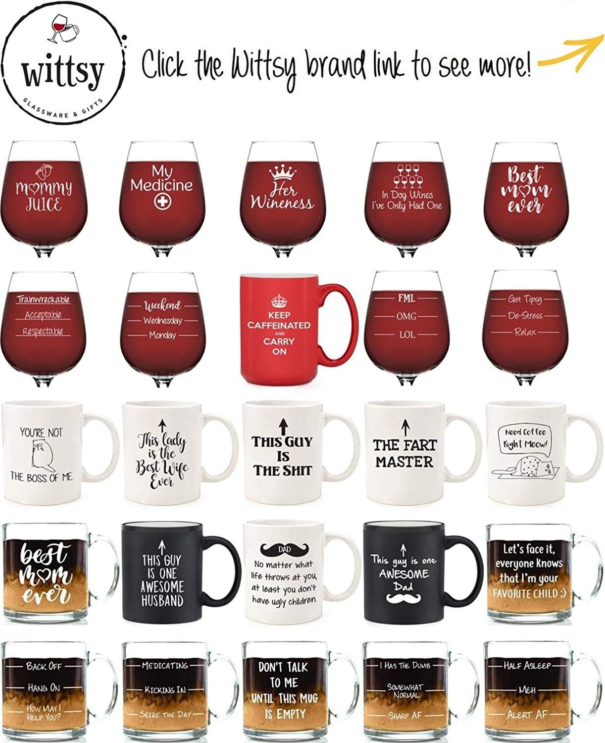 - Satisfaction Guarantee - All of our gift items are backed by our manufacturer's money back guarantee ensuring you receive a quality product free from defects; Wittsy Glassware creates unique novelty drinkware with sayings that make fun gifts for men, women, him or her, parents, sibling, bff, children, mom, dad, son, daughter, husband, wife, brother, sister, aunt, grandma, grandpa, girls, seniors, adults, from kids, mother, father, employee, coworker, boss, male, female
