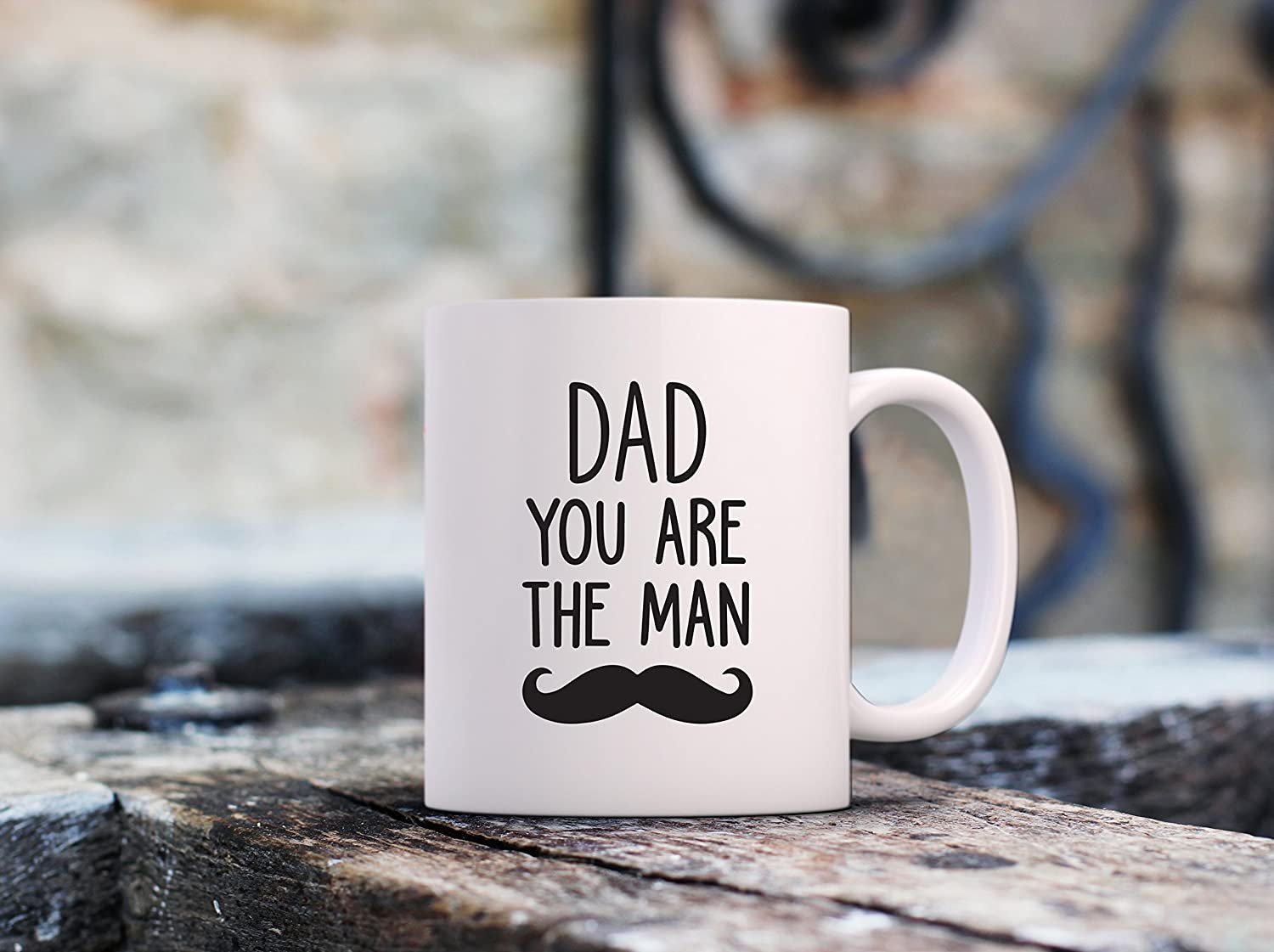 Dad You Are The Man Funny Coffee Mug - Best Christmas Gifts for Dad, Men - Cool Xmas Dad Gifts from Daughter, Son, Wife, Kids - Unique Birthday Present Ideas for Father, Husband, Him - Fun Novelty Cup