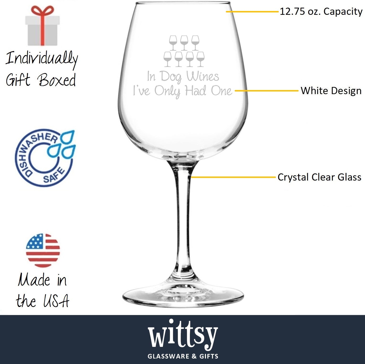 In Dog Wines Funny Wine Glass - Best Christmas Gifts for Women, Mom, Dad - Unique Xmas Gift for Dog Lover, Men - Present from Husband, Son, Daughter