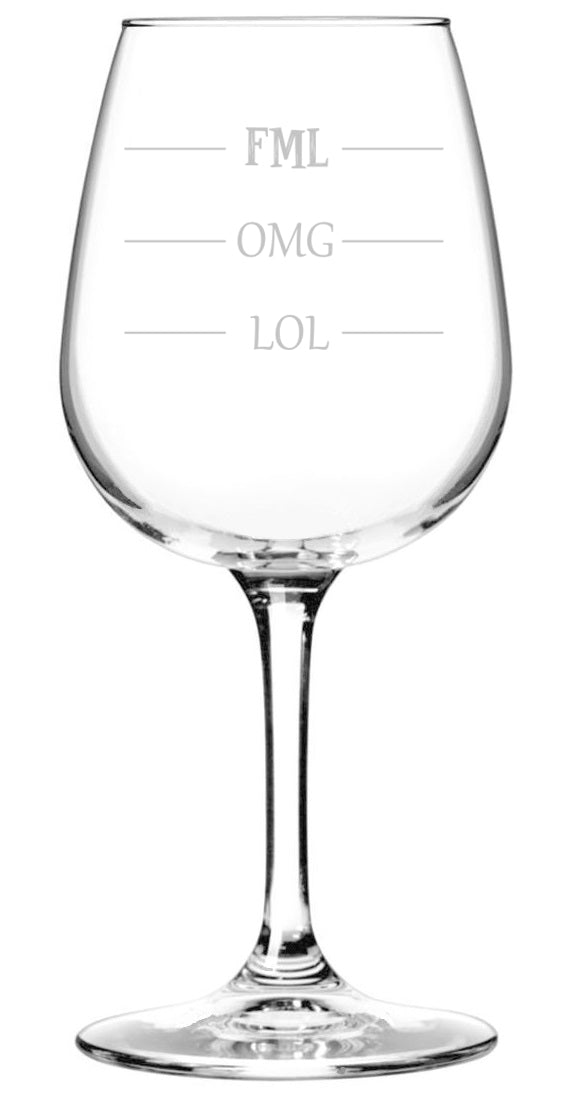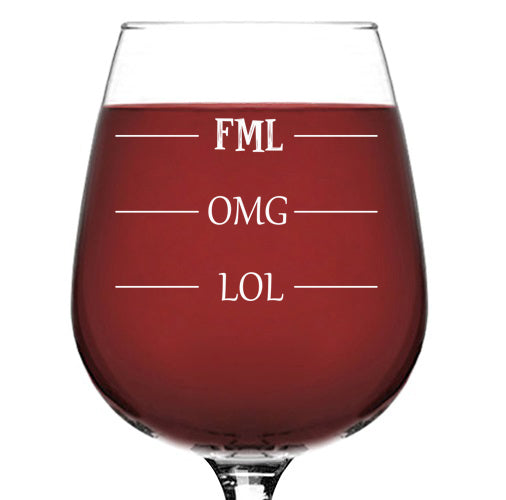 - A PERFECT GIFT FOR WINE DRINKERS - A fun glass showing different pour levels - LOL, OMG and FML; good for drinking red or white wine