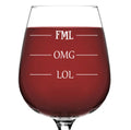LOL-OMG-FML Funny Wine Glass - Best Christmas Gag Gifts for Women, Men, Mom - Unique Xmas Gift Idea for Her, Him, Friend, Sister - Cool Bday Present from Husband, Wife, Son, Daughter -Fun Novelty Gift