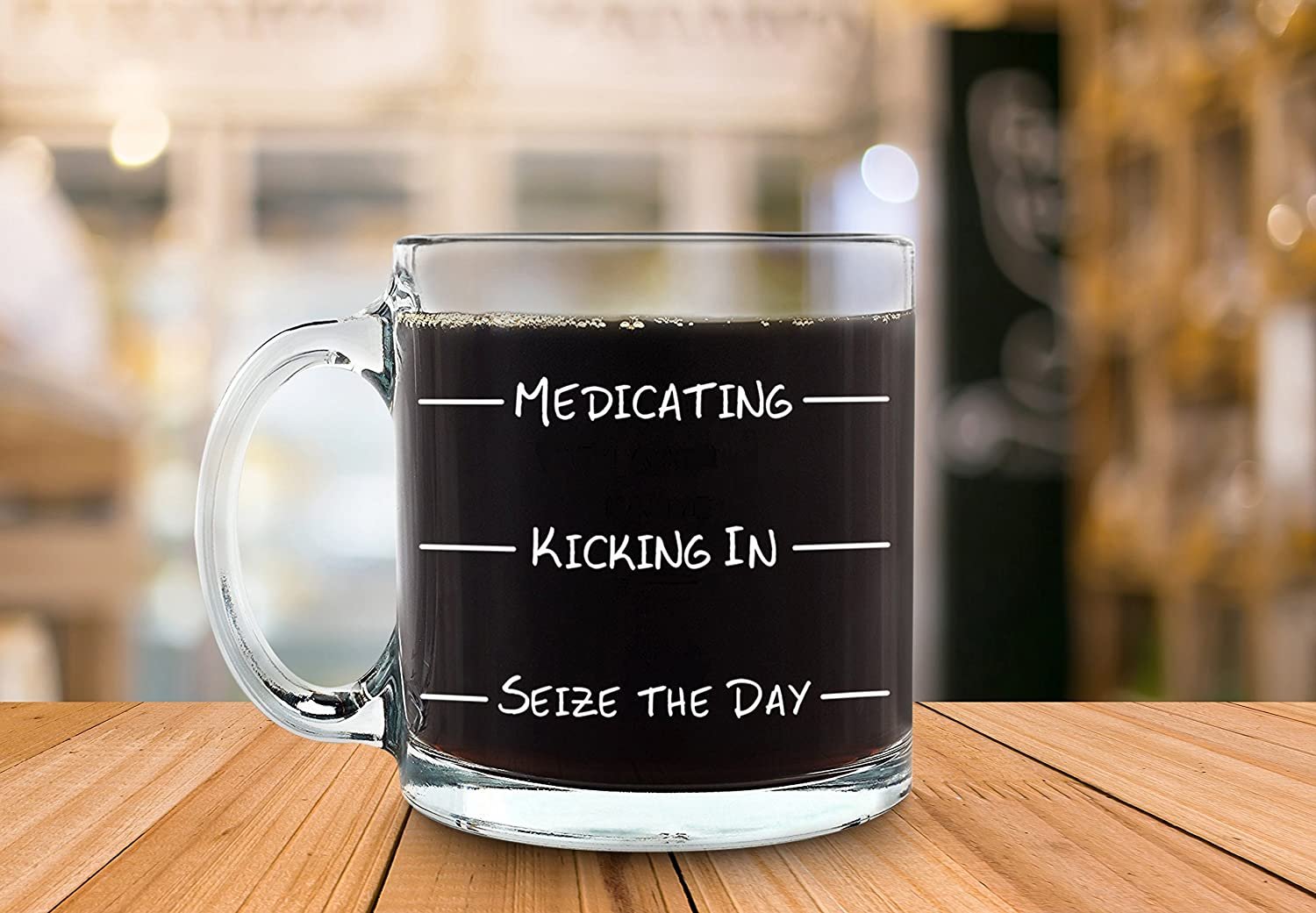 Medicating Funny Coffee Mug - Best Novelty Christmas Gifts for Men, Women, Husband, Wife - Cool Xmas Gag Gift Ideas for Him, Her, Dad, Mom from Son, Daughter - Unique Birthday Present - Fun Glass Cup