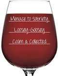 Menace To Sobriety Funny Wine Glass - Best Christmas Gag Gifts for Women, Mom - Unique Xmas BFF Gifts for Her - Cool Bday Present Idea from Husband, Son, Daughter - Fun Novelty Gifts for Wife, Friend