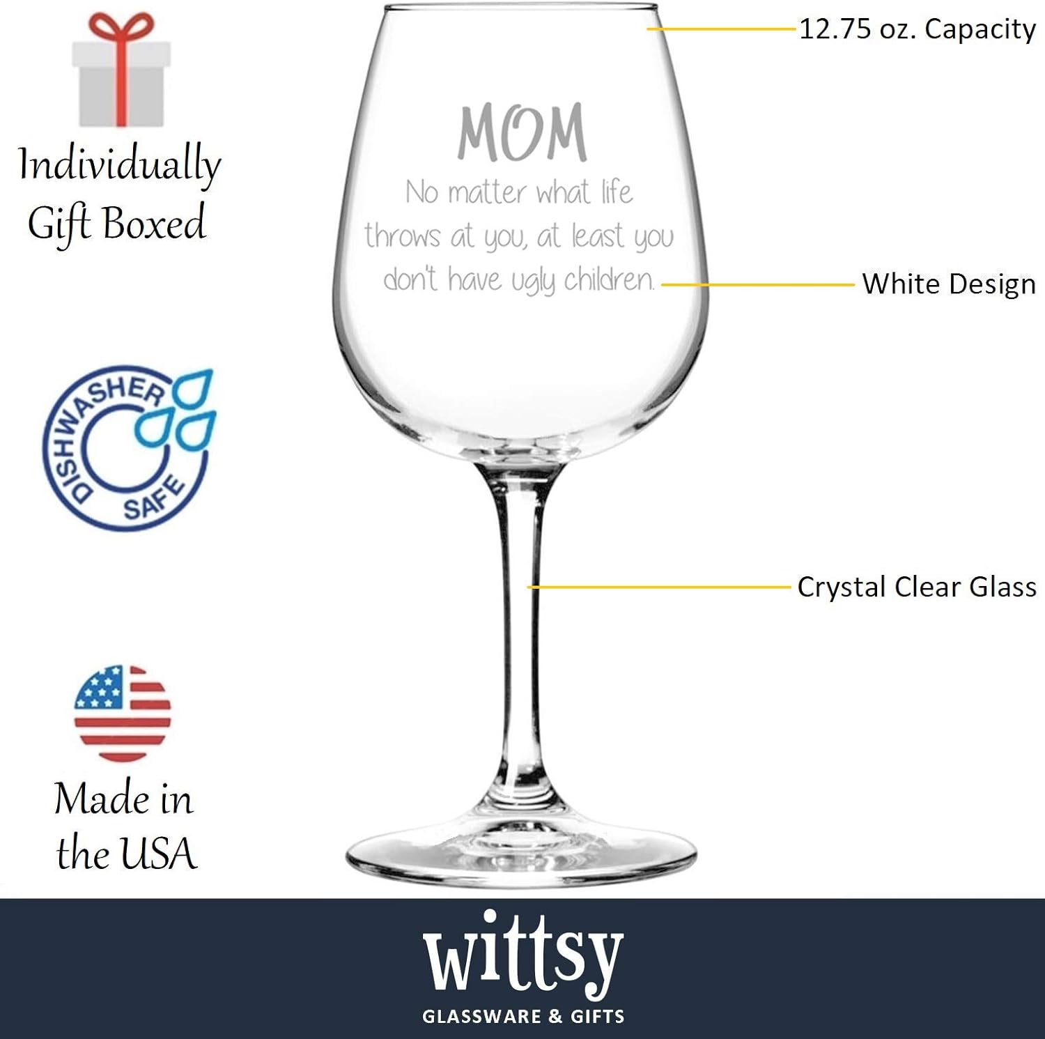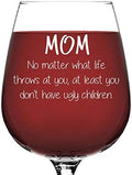 Mom No Matter What, Ugly Children Funny Wine Glass - Gifts for Moms, Wife, Women - Unique Mom Gifts from Daughter, Son, Kids - Cute Wine Glass for Mother, Her - Novelty Wine Gift