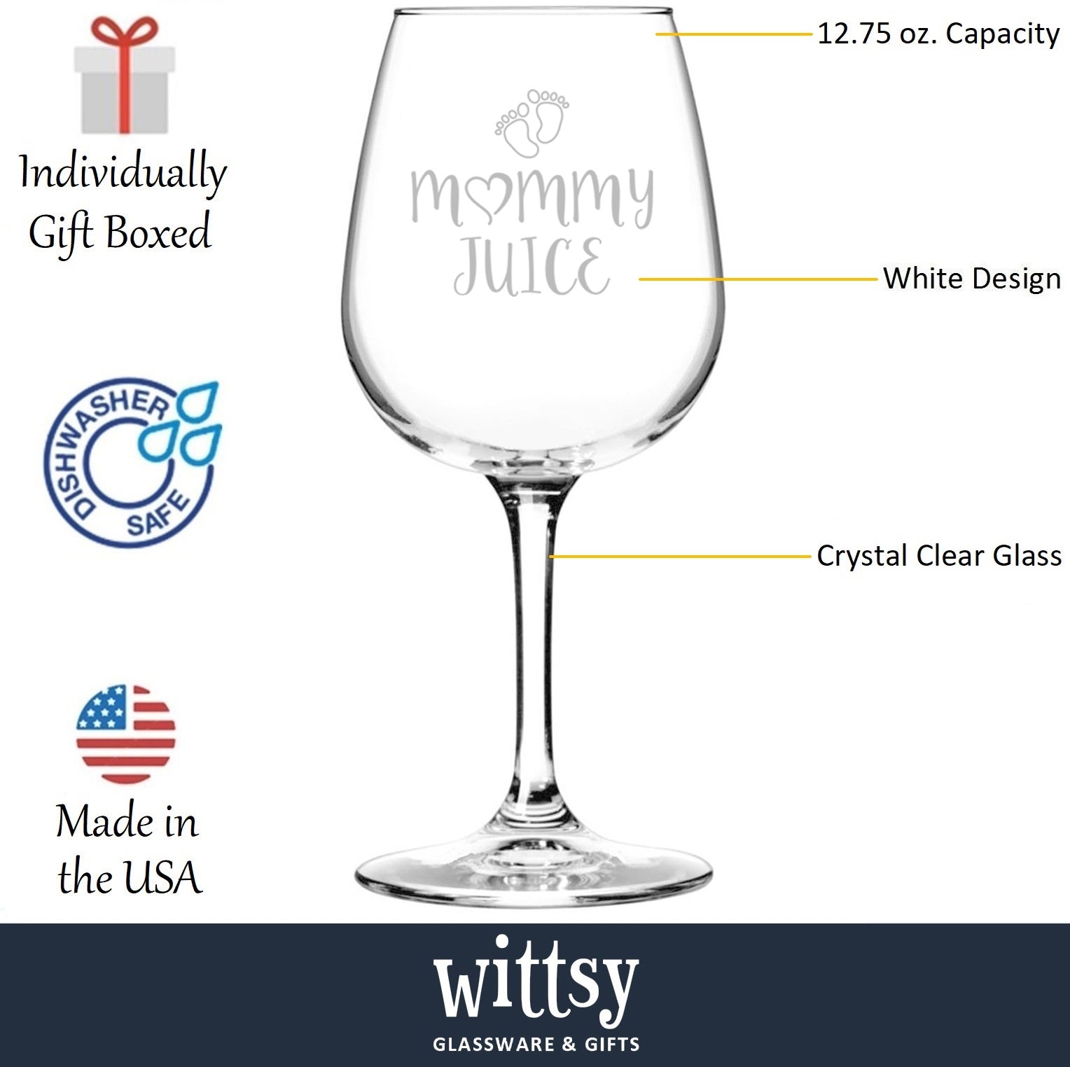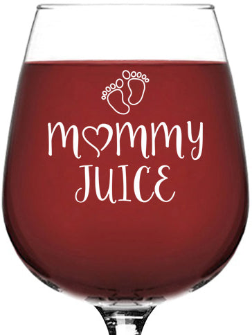 Mommy Juice Funny Wine Glass - Best Christmas Gifts for Women, Mom - Unique Xmas Gag Wife Gifts from Husband, Son, Daughter - Fun Novelty Birthday Present Idea for a New Mom, Friend, Adult Sister, Her