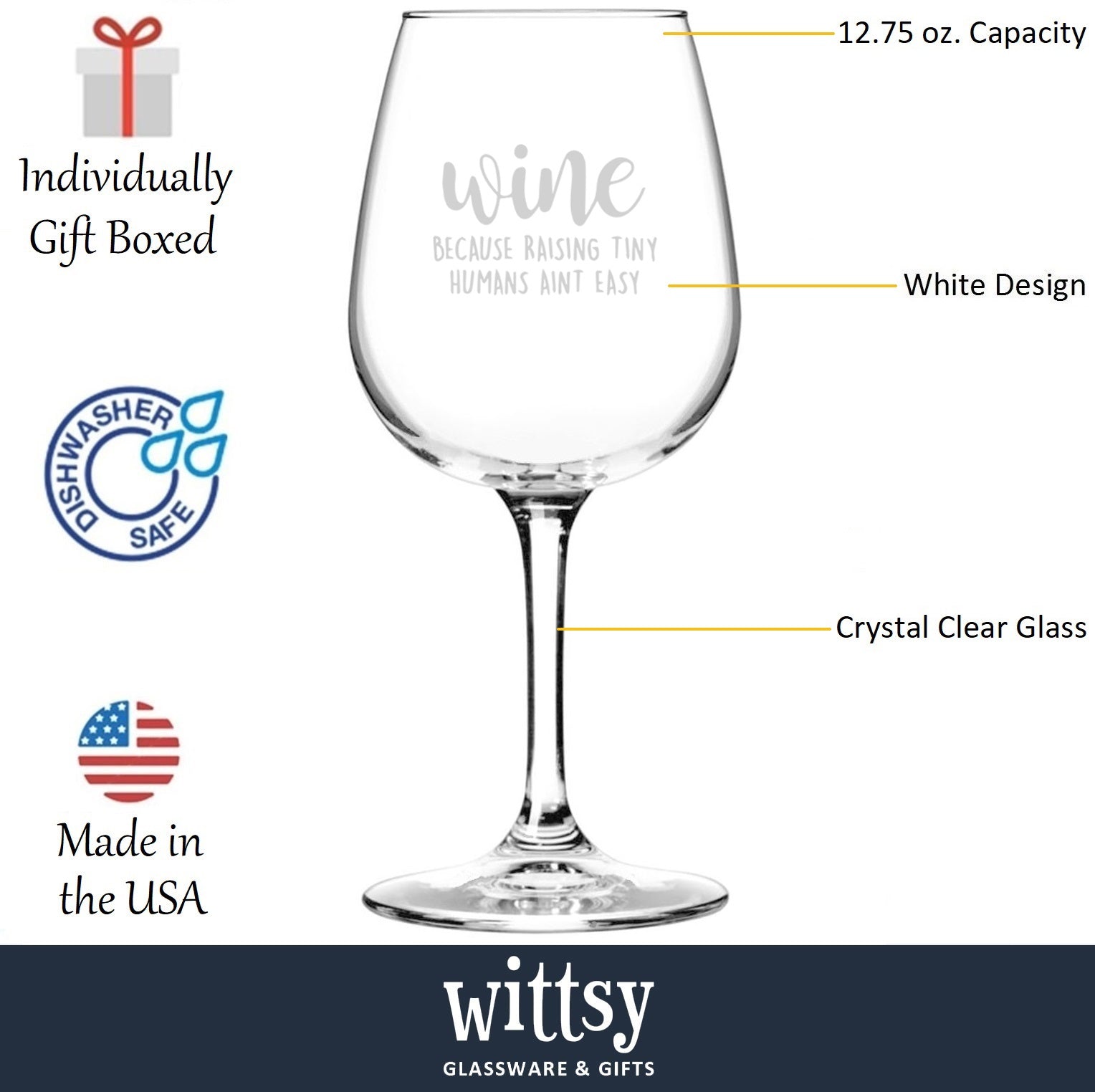 Raising Tiny Humans Funny Wine Glass - Best Christmas Gift for Women, Mom, Daughter, Men, Dad - Unique Xmas Gag Gift Idea for Wife from Husband