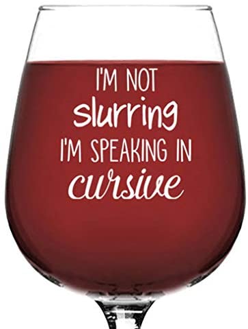Speaking In Cursive Funny Wine Glass - Best Christmas Wine Gifts for Women, Mom, Men - Unique Xmas Gag Gifts for Wife, Her - Cool Birthday Present Ideas from Husband, Son, Daughter - Fun Novelty Gift