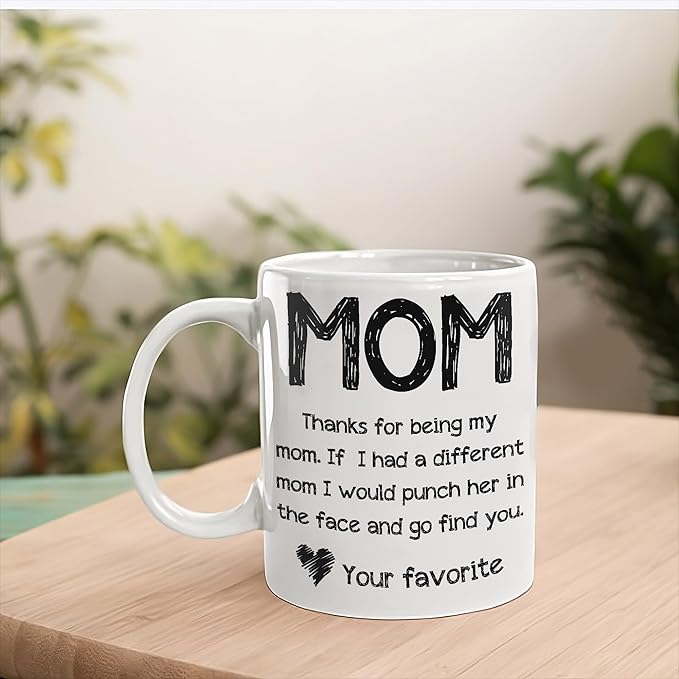 - A Great Gift For Mom – An awesome present for a mother from her child; the design says Mom, Thanks for being my mom. If I had a different mom I would punch her in the face and go find you. – Your favorite