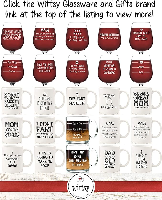 - Satisfaction Guarantee - All of our gift items are backed by our manufacturer's money back guarantee ensuring you receive a quality product free from defects; Wittsy Glassware creates unique novelty drinkware with sayings that make fun gifts for men, women, him or her, parents, sibling, mom, dad, son, daughter, husband, wife, brother, sister, grandma, grandpa, boys, girls, seniors, adults, teens, kids, student, teacher, employee, boss, male, female
